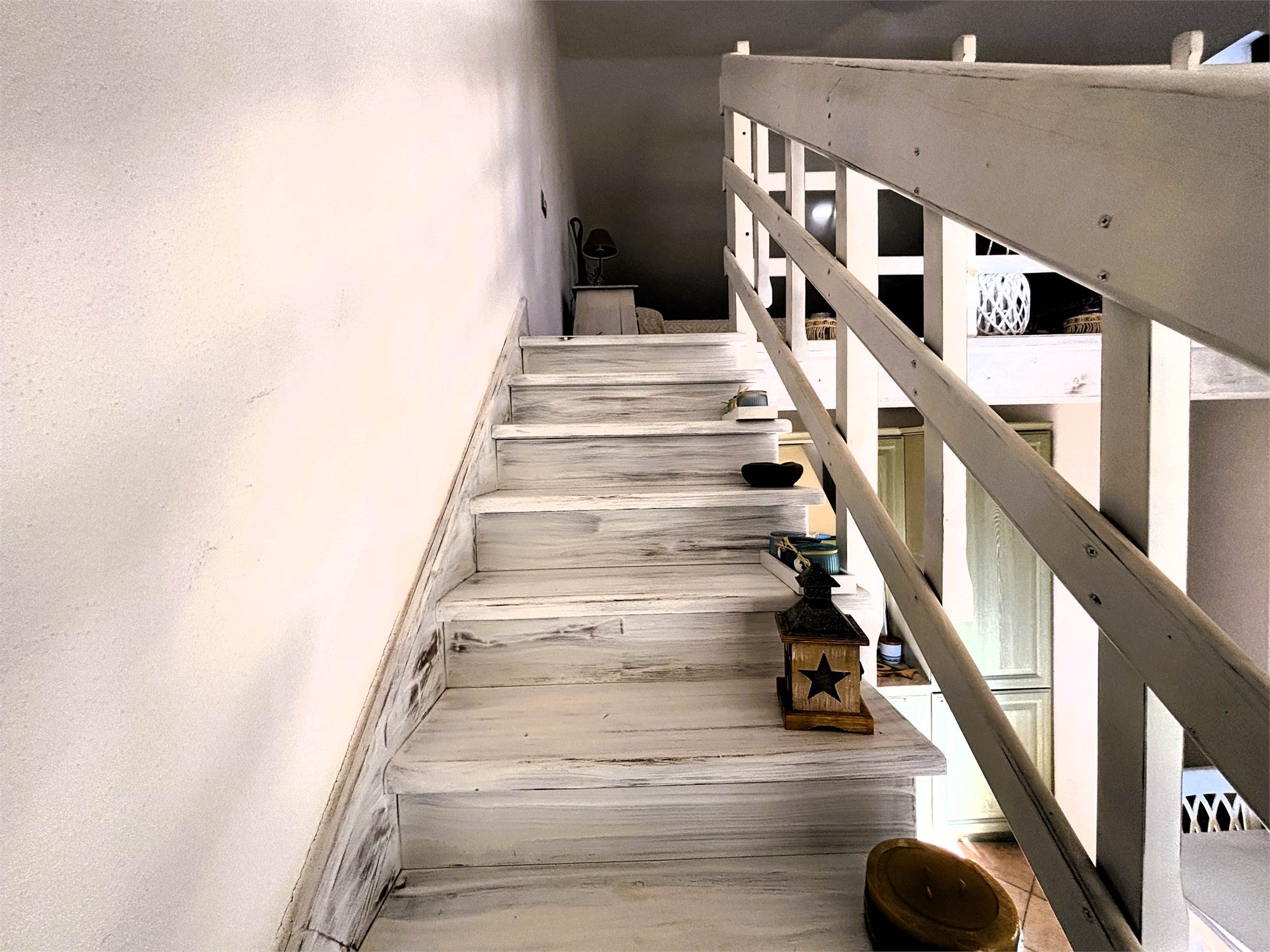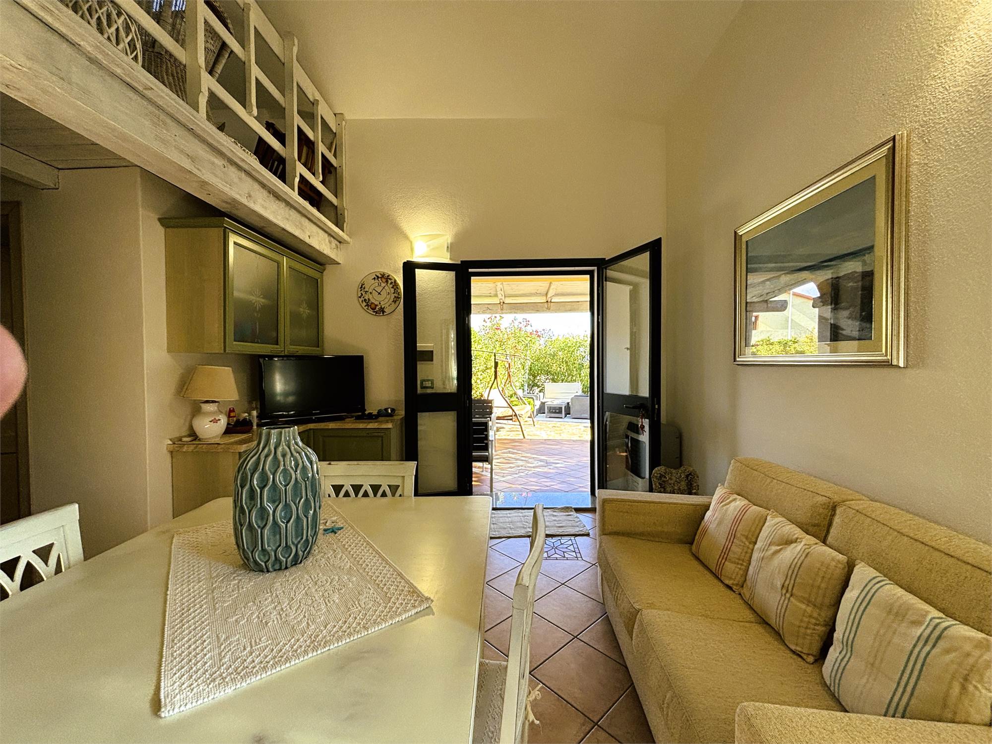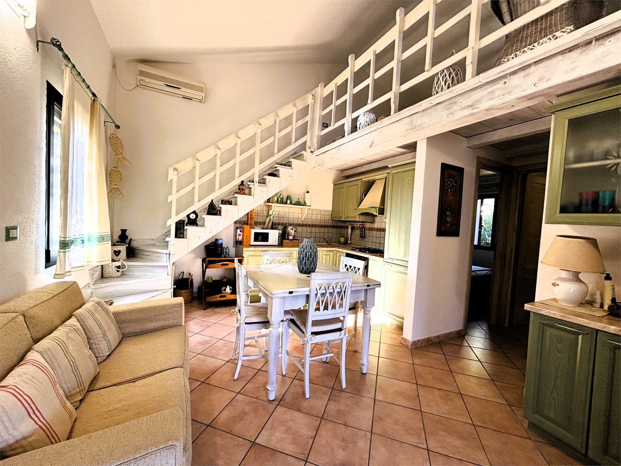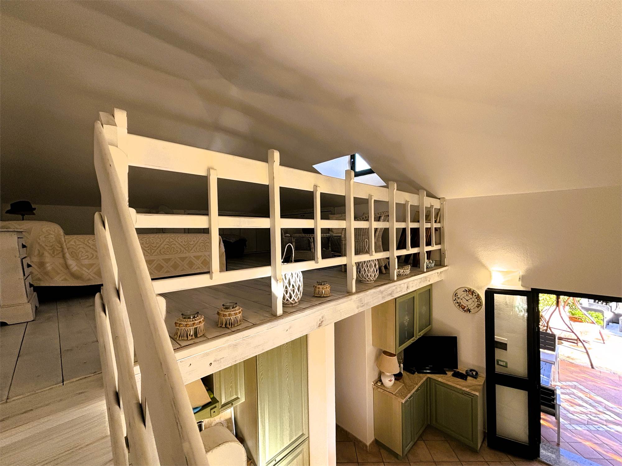 Attraverso un ampio e curato patio d’ingresso, si accede al piano terra rialzato, dove ci accoglie un luminoso soggiorno con angolo cottura, due camere da letto e un bagno con doccia. Un comodo soppalco ospita un letto matrimoniale, fungendo di fatto da terza camera e regalando all’ambiente fascino e funzionalità.