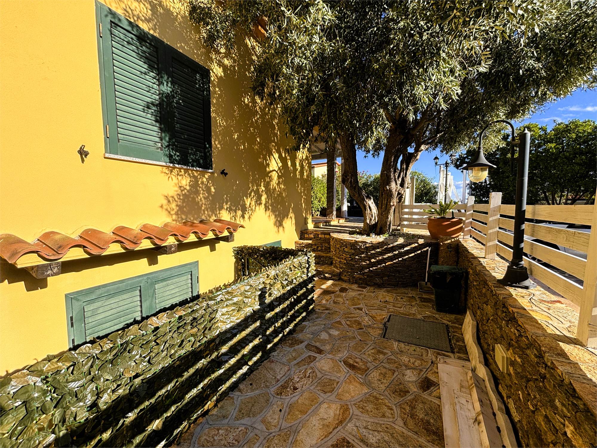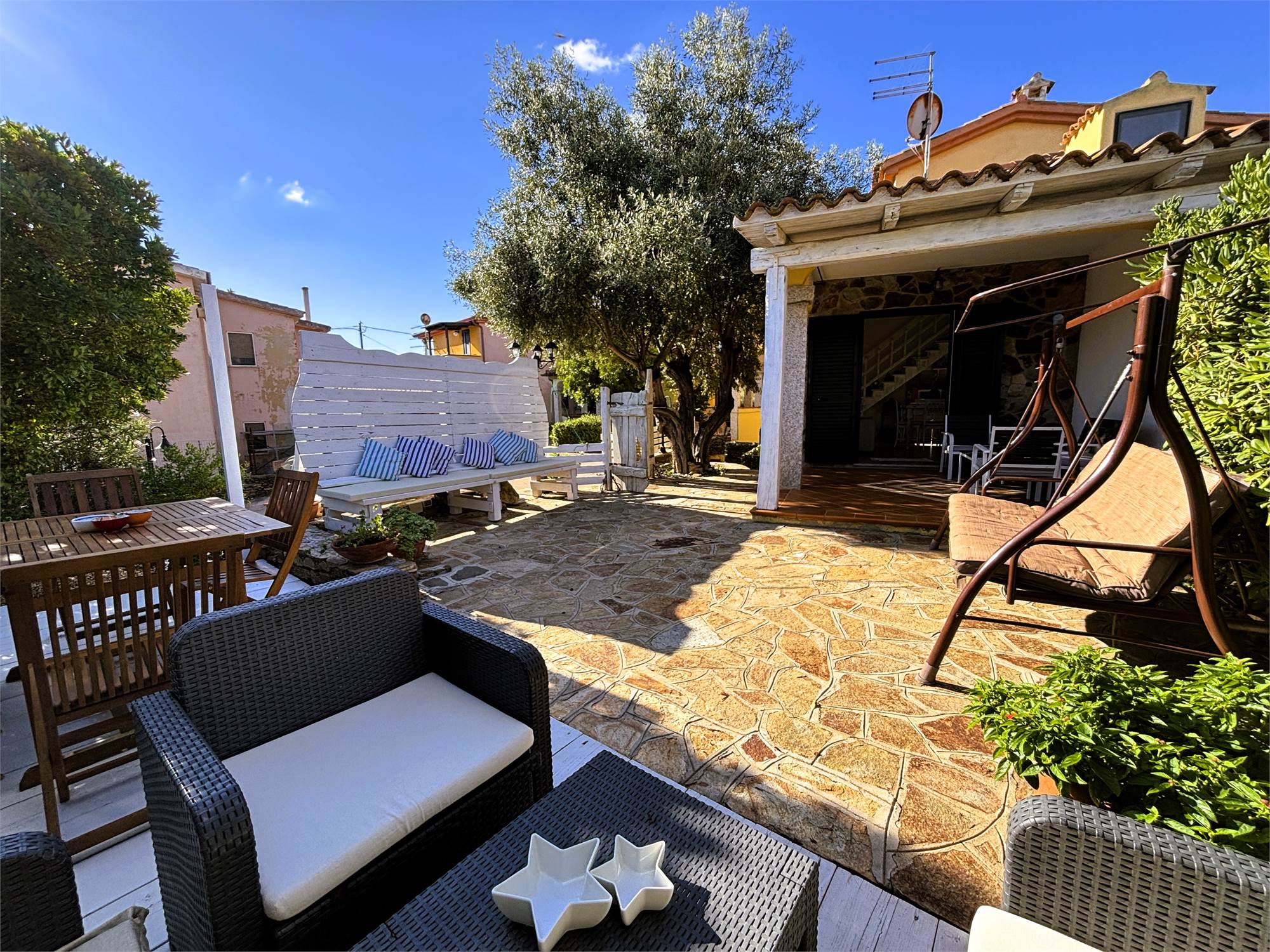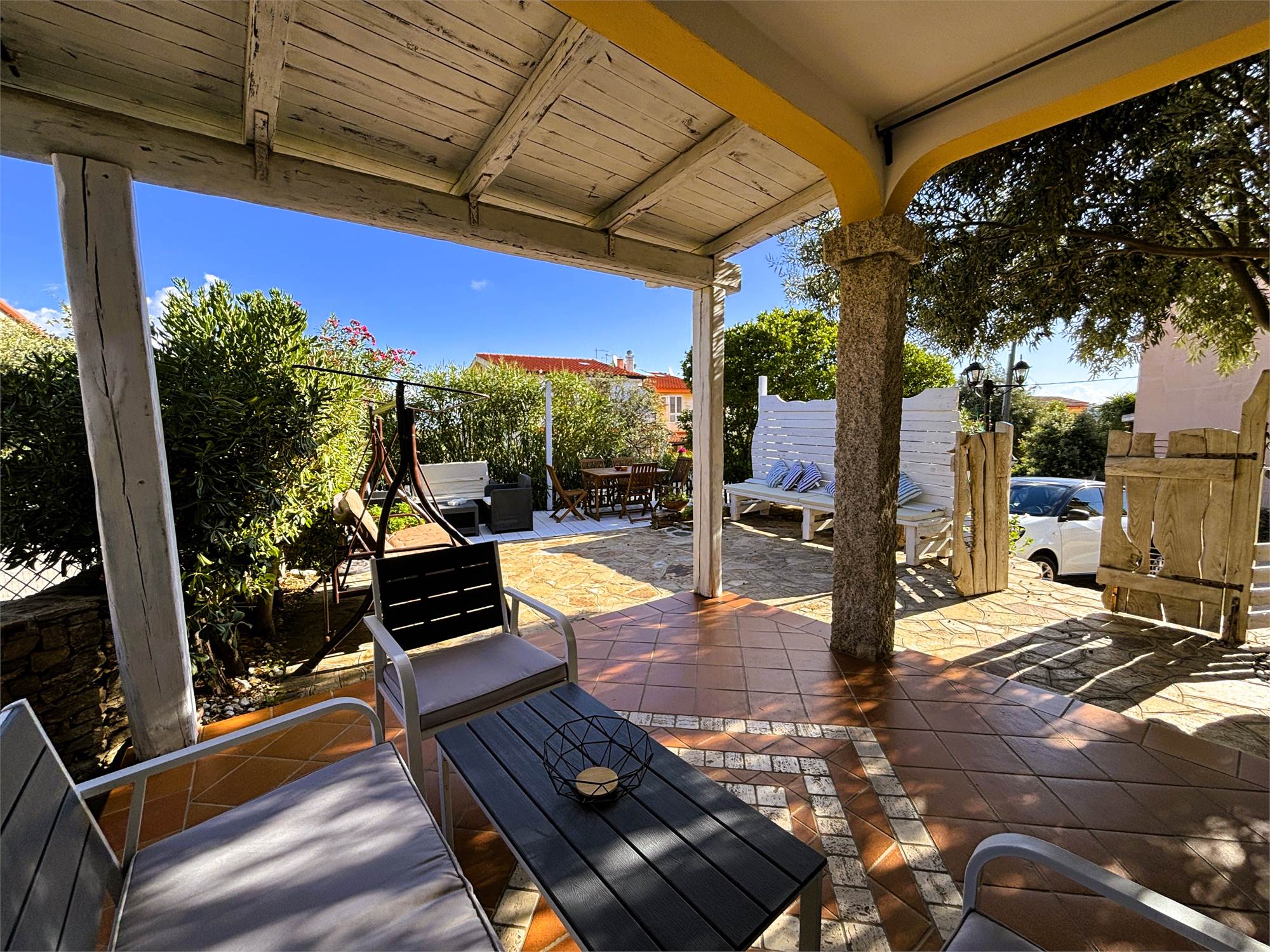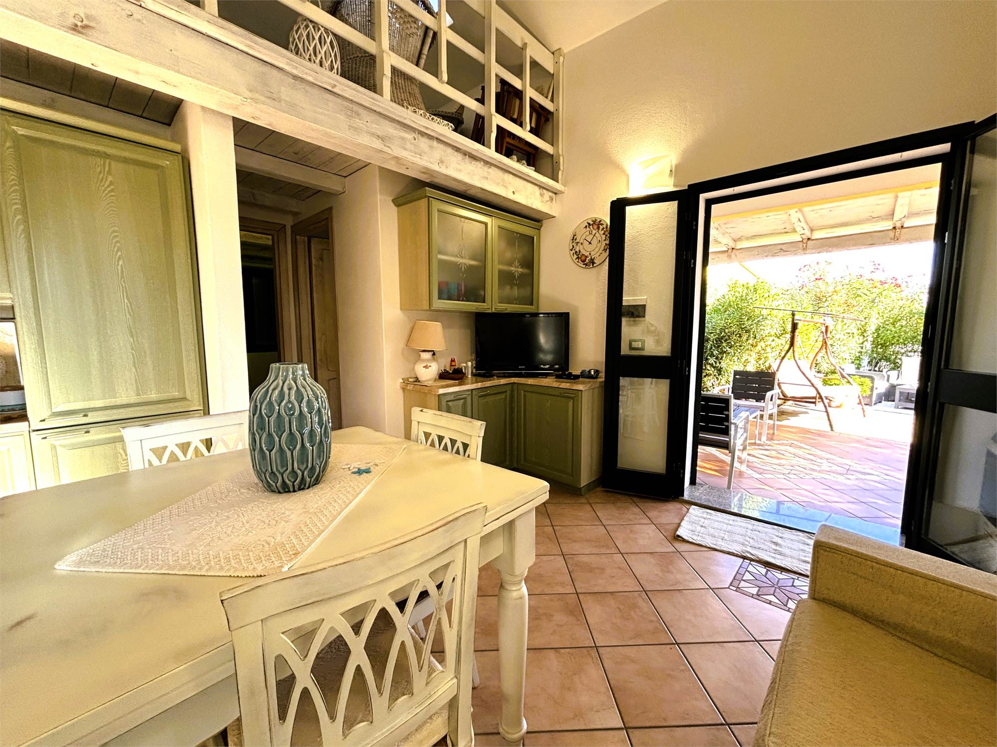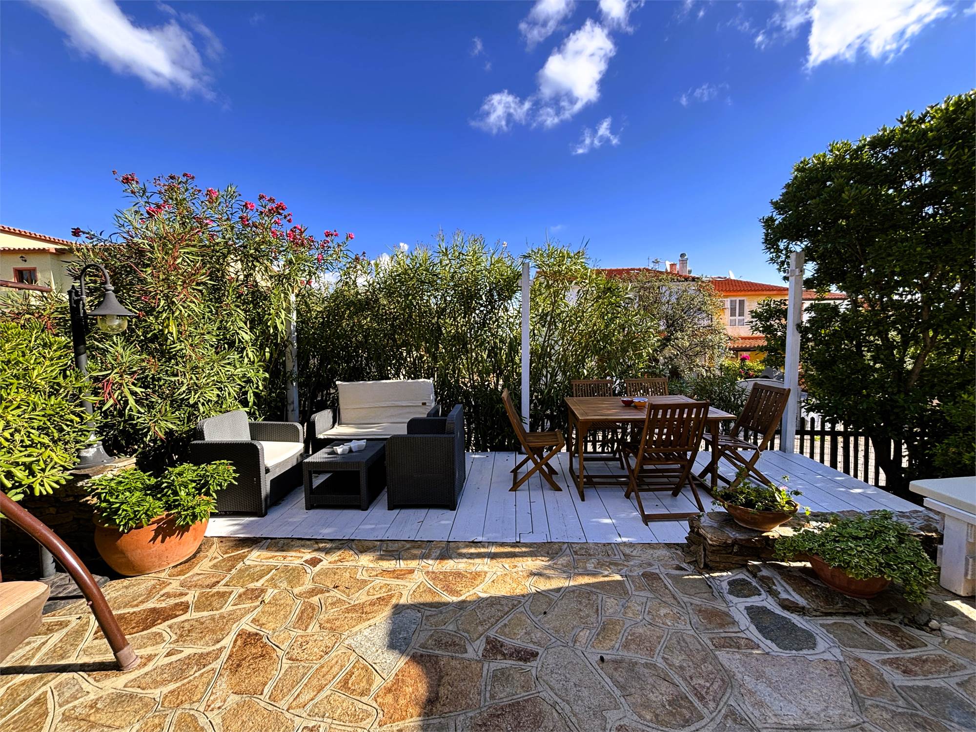 Attraverso un ampio e curato patio d’ingresso, si accede al piano terra rialzato, dove ci accoglie un luminoso soggiorno con angolo cottura, due camere da letto e un bagno con doccia. Un comodo soppalco ospita un letto matrimoniale, fungendo di fatto da terza camera e regalando all’ambiente fascino e funzionalità.
