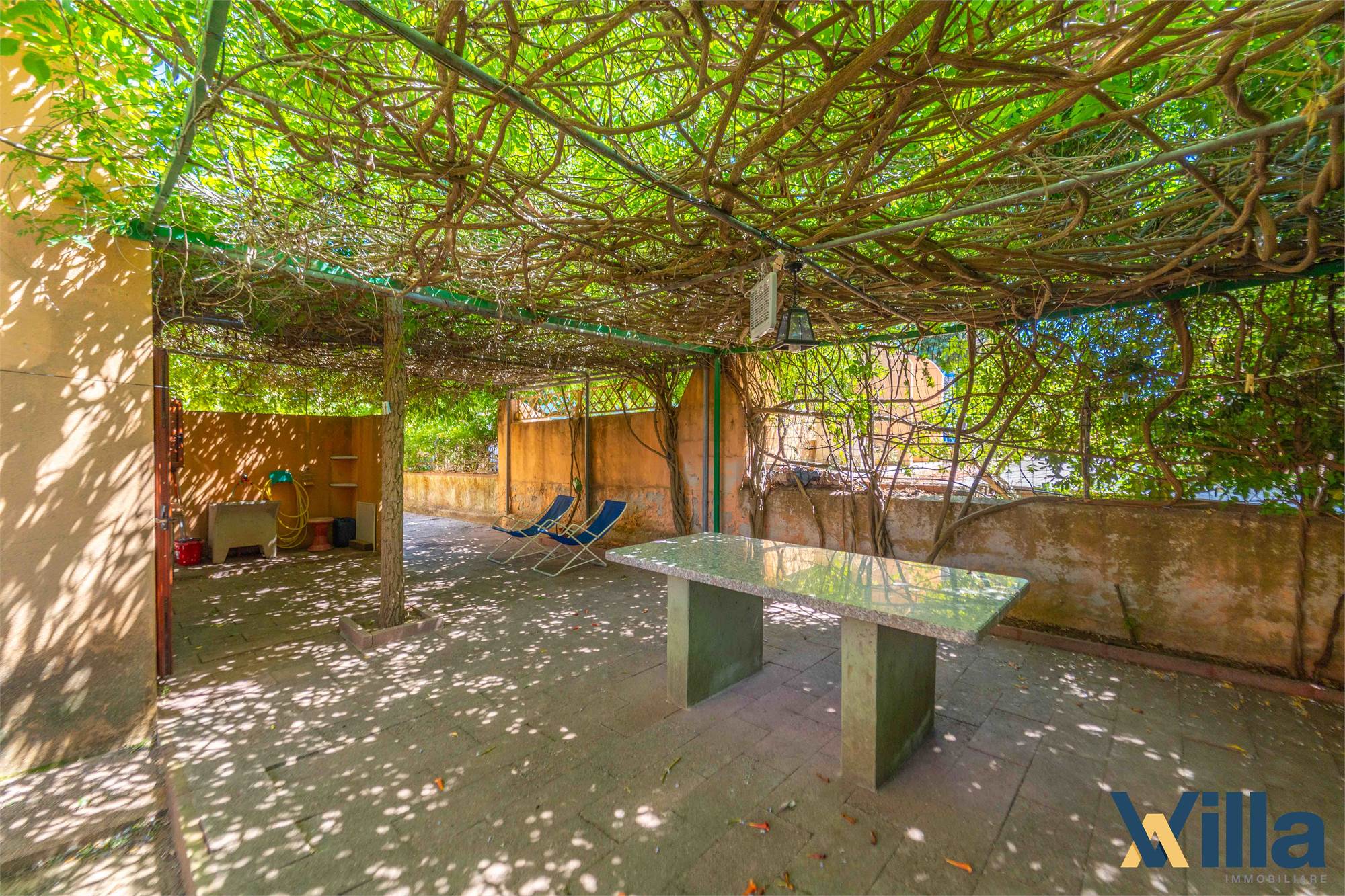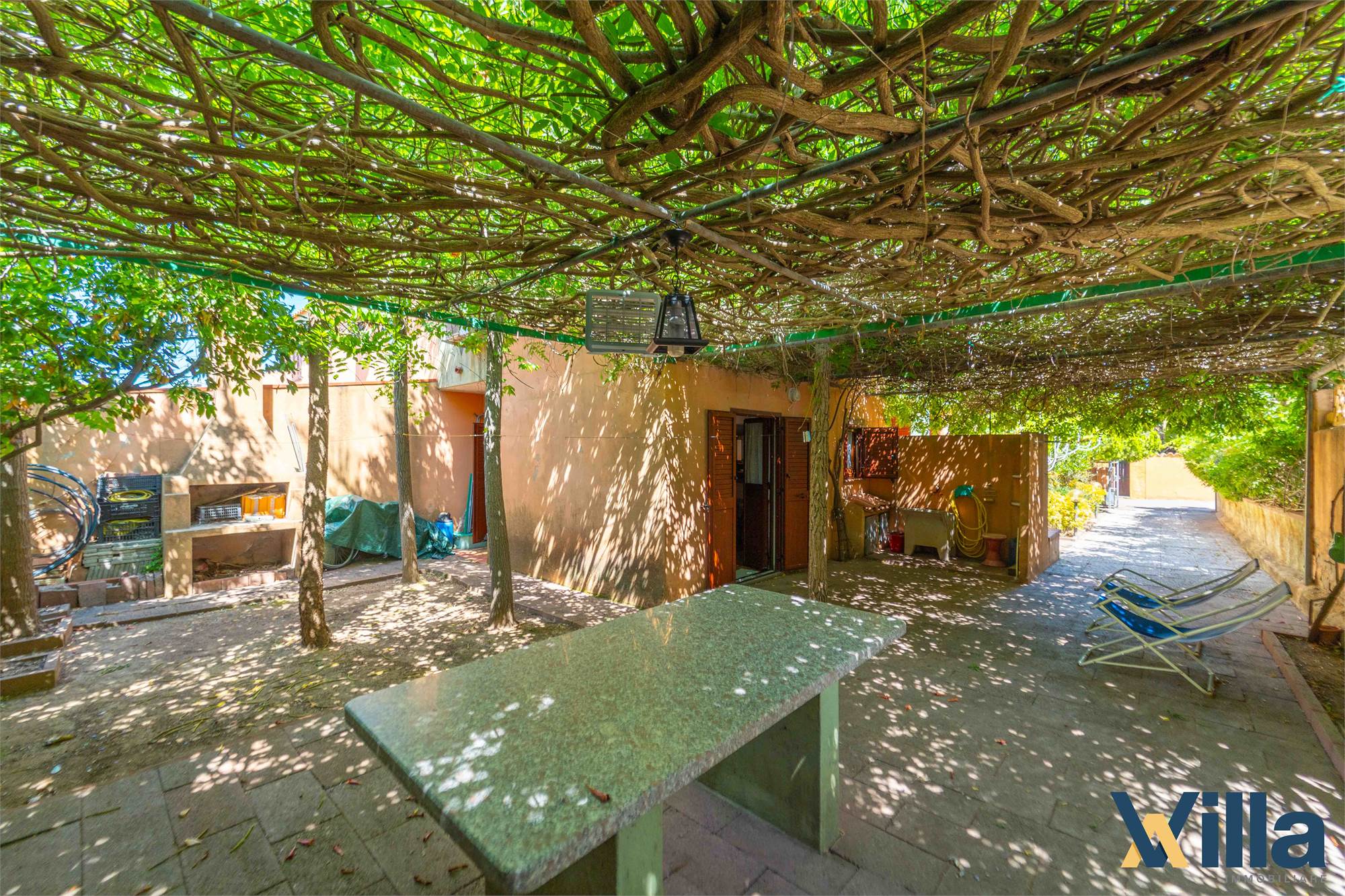 La prima unità è dotata di patio d'ingresso e un piccolo giardino di pertinenza mentre la seconda dispone di un ampio giardino di circa 100 mq, con un barbecue in pietra, un luogo dove ritrovarsi e condividere momenti all'aria aperta. Al momento il giardino e gli spazi esterni sono in uso comune tra le due abitazioni ma facilmente frazionabili.