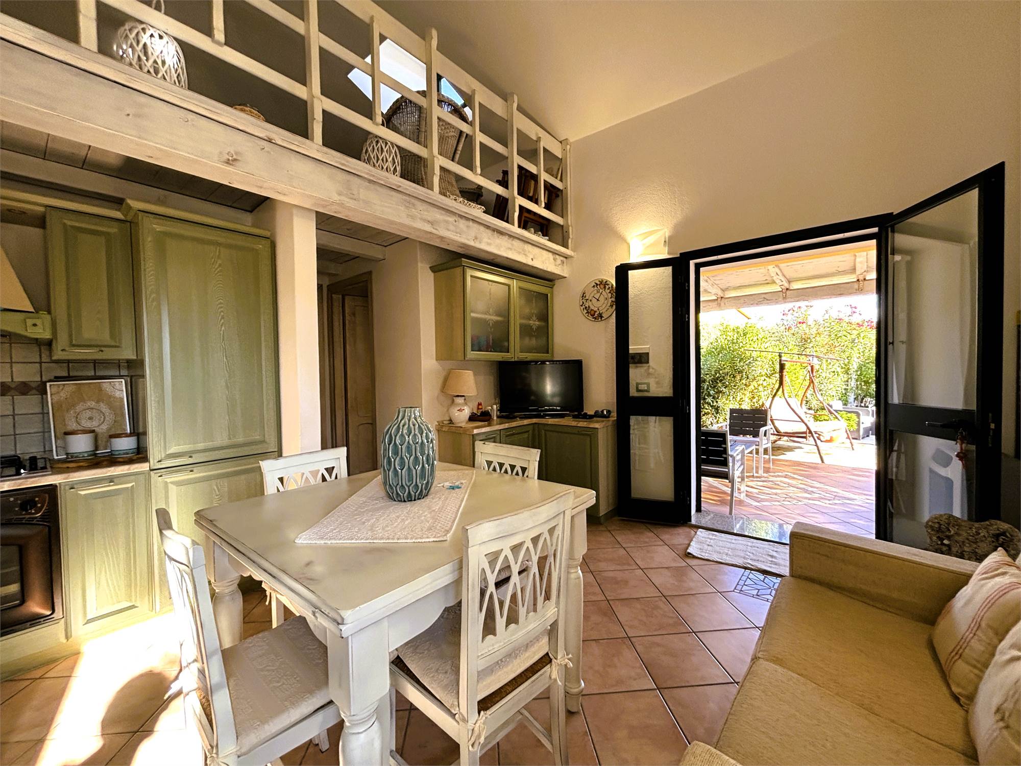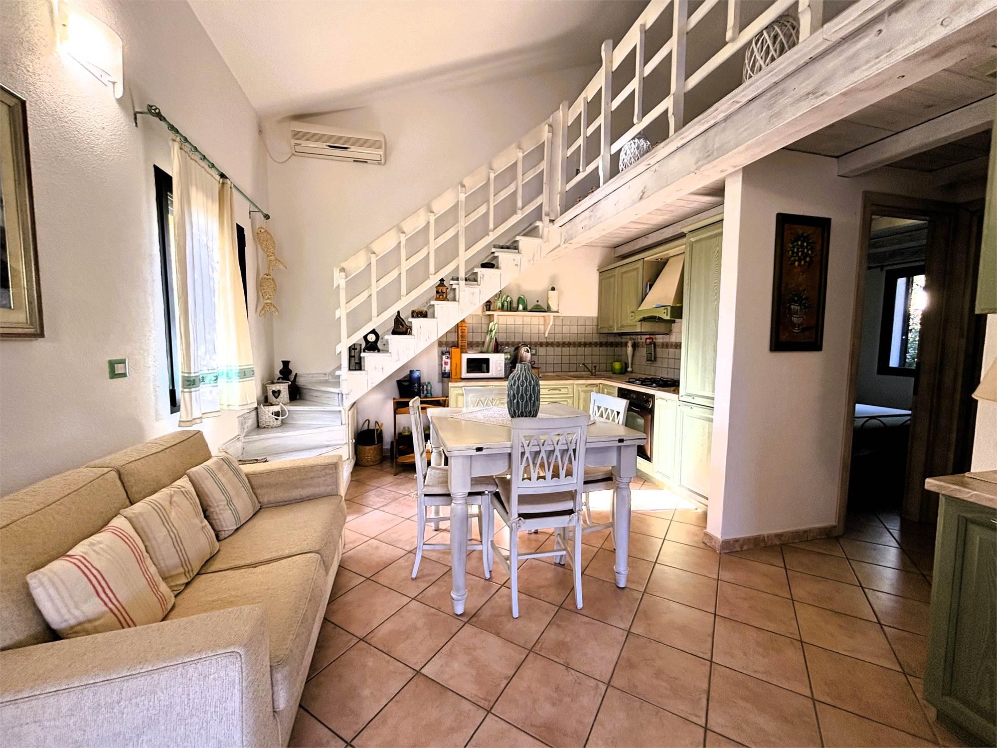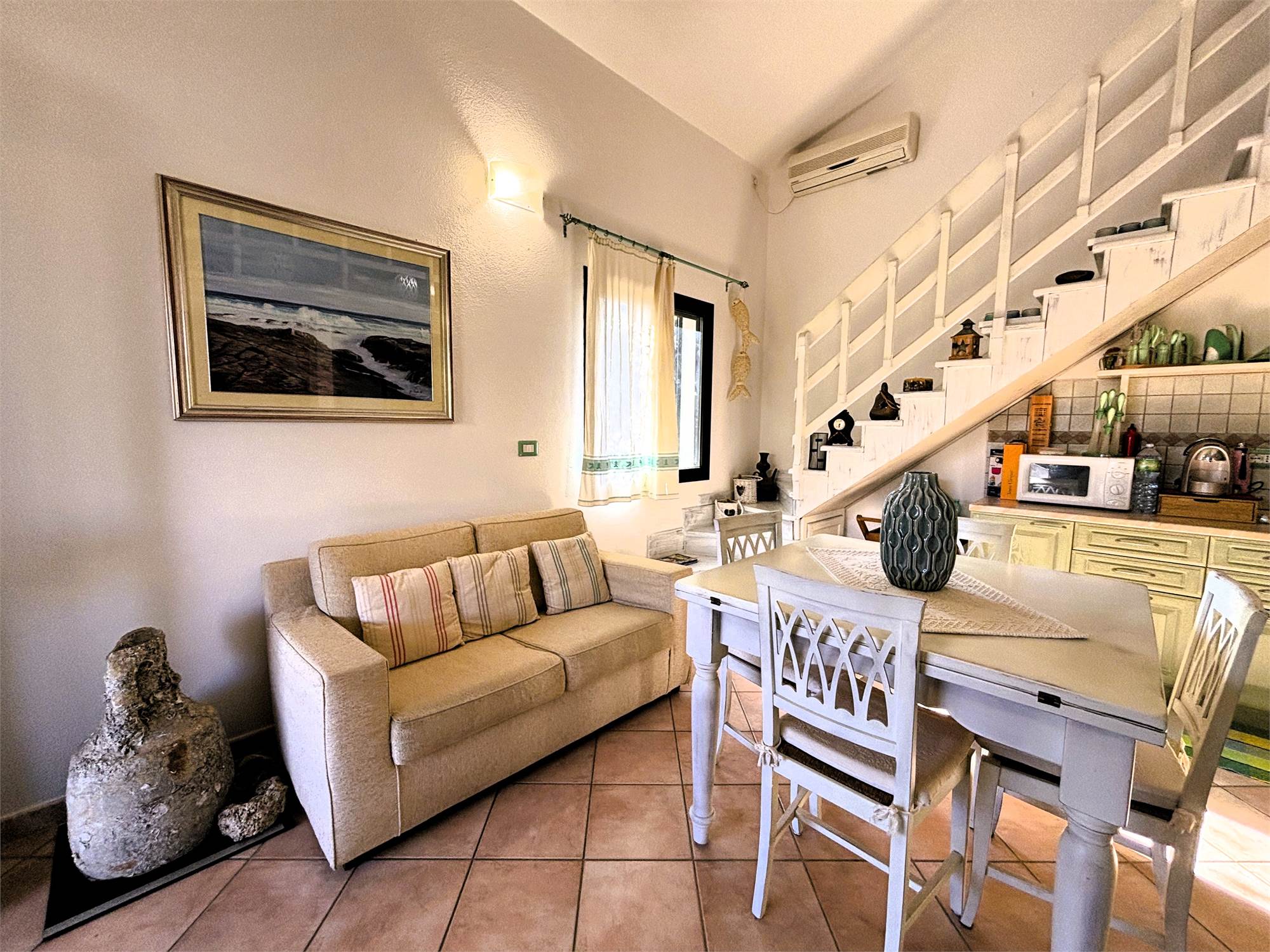 Attraverso un ampio e curato patio d’ingresso, si accede al piano terra rialzato, dove ci accoglie un luminoso soggiorno con angolo cottura, due camere da letto e un bagno con doccia. Un comodo soppalco ospita un letto matrimoniale, fungendo di fatto da terza camera e regalando all’ambiente fascino e funzionalità.