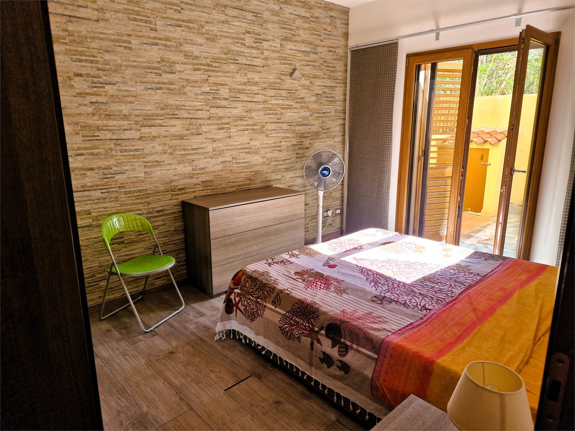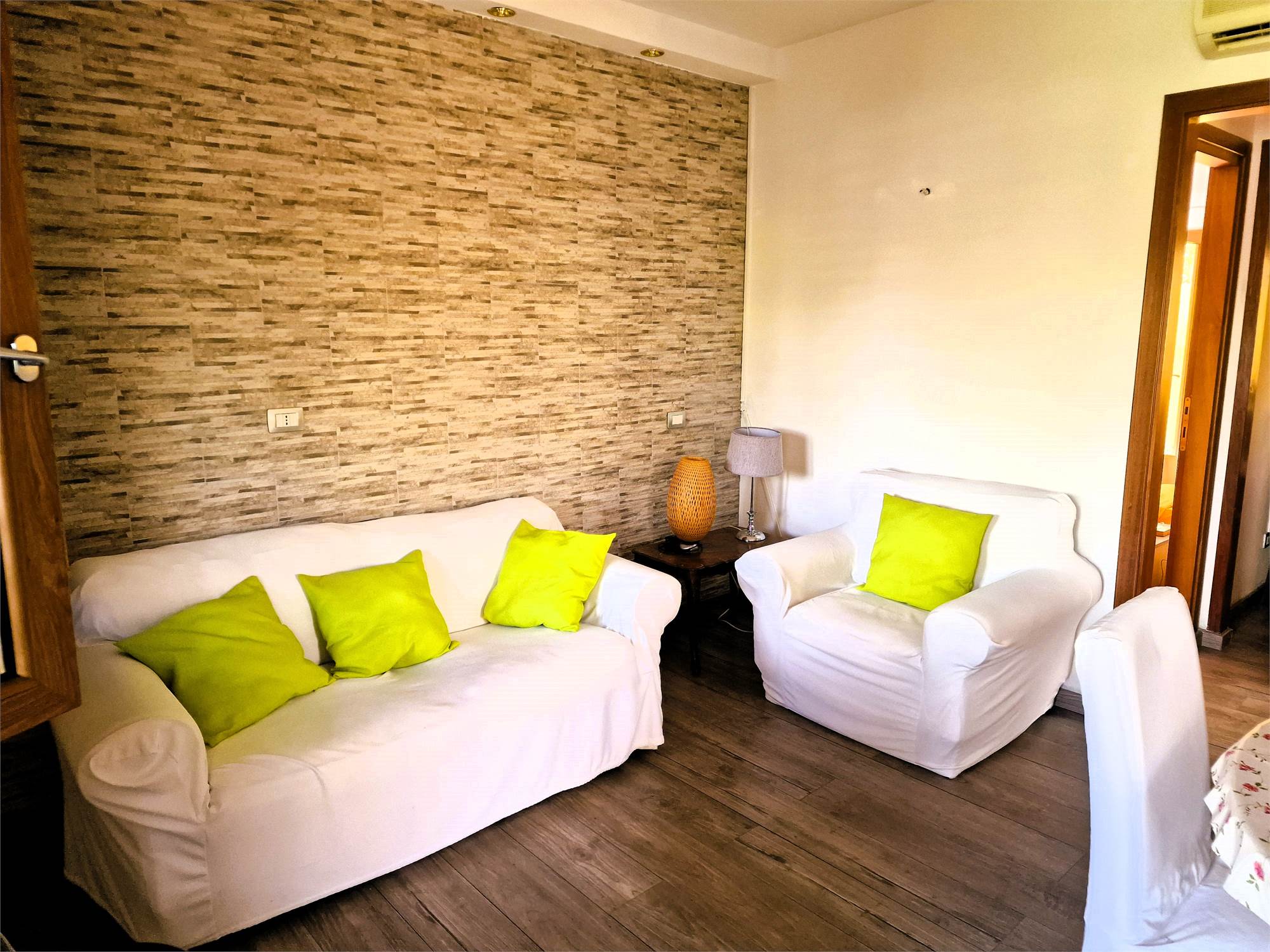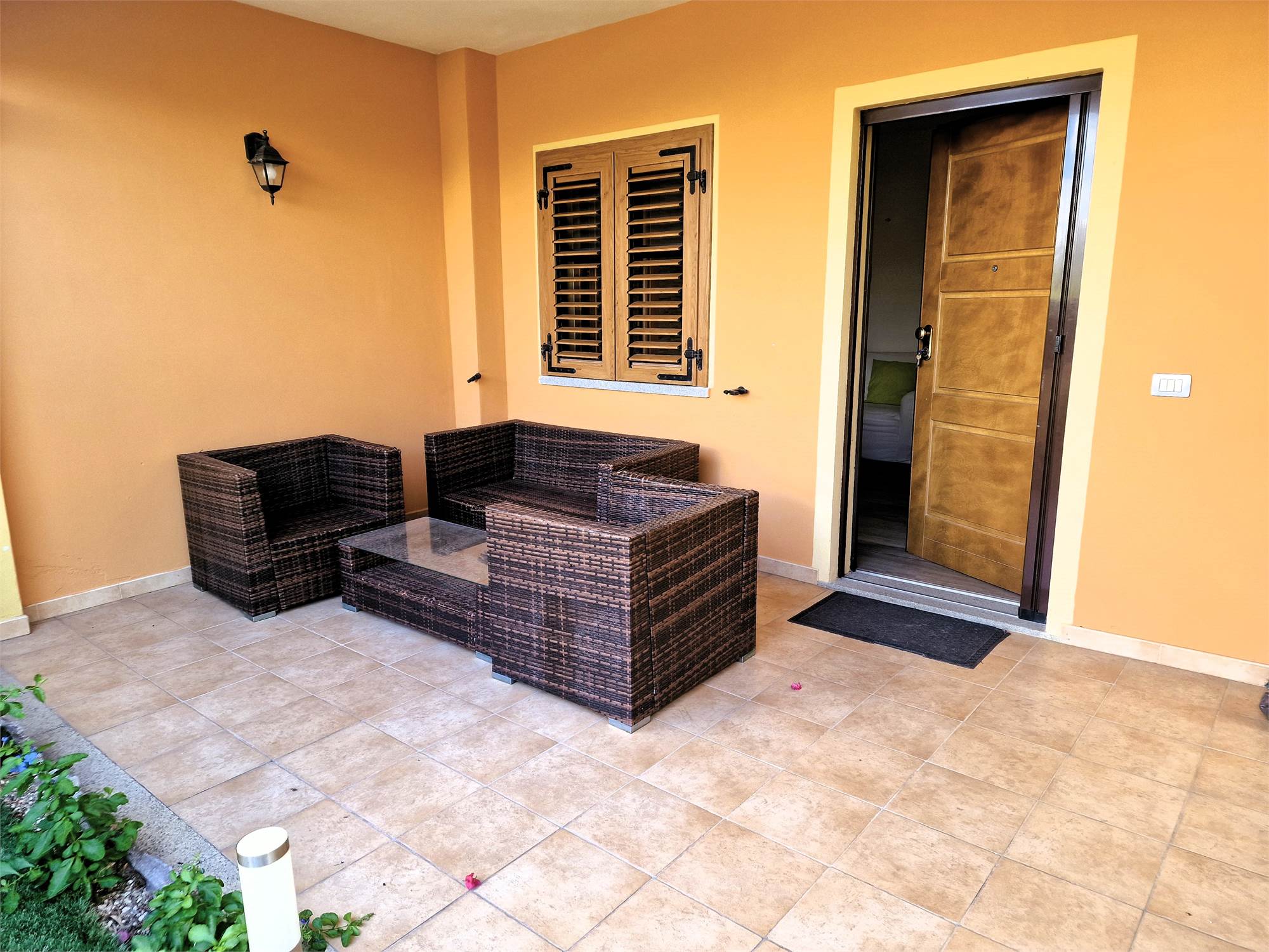 L’accesso all’abitazione avviene dal giardino frontale, che conduce al piano terra, dove troviamo un accogliente soggiorno con cucinotto separato, un bagno completo con doccia e una camera da letto con accesso diretto al giardino, che valorizza l’indipendenza e la fruibilità degli spazi esterni.