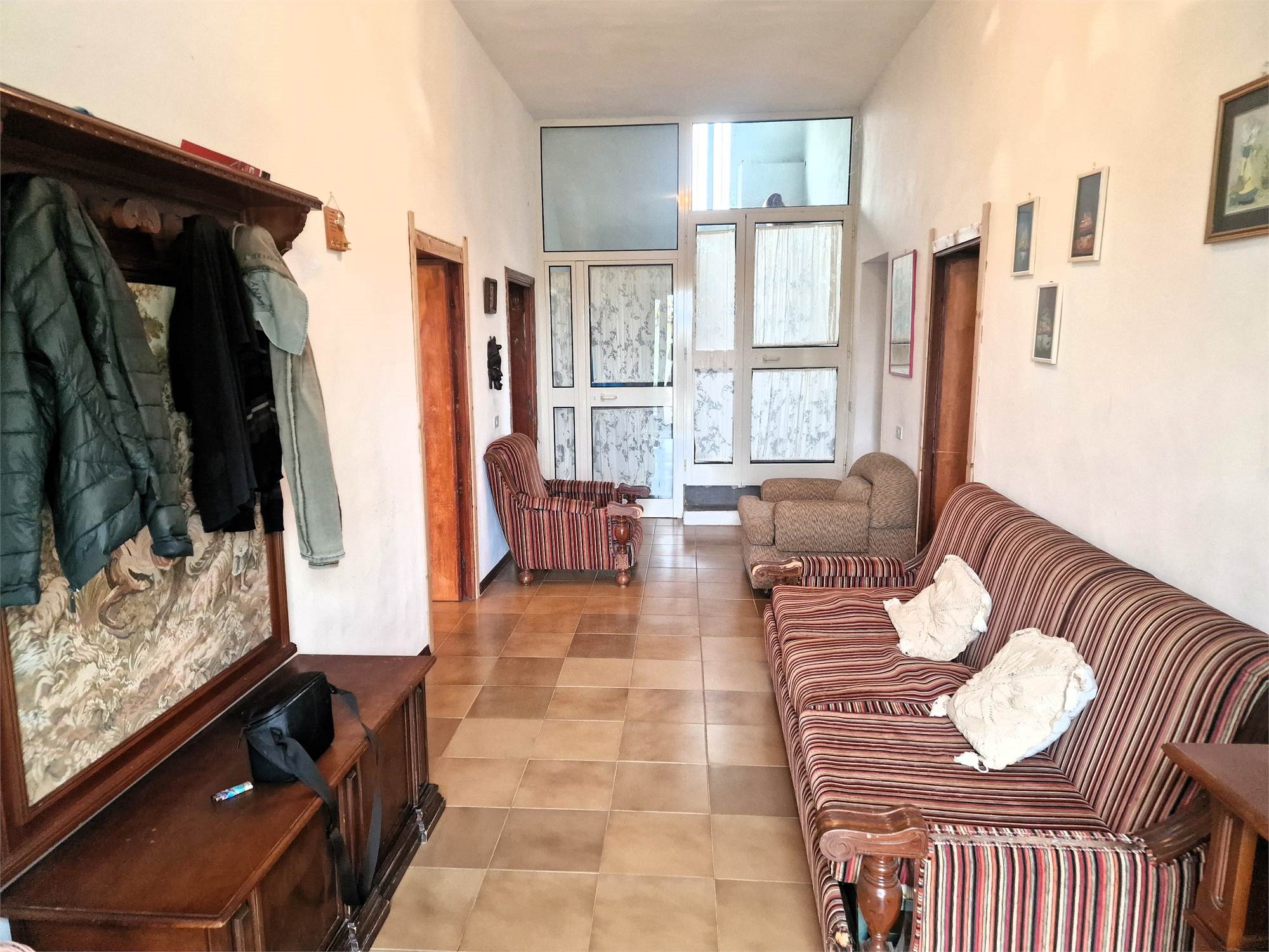 La casa è libera su quattro lati e si apre su un cortile rialzato e completamente recintato. Al piano terra si trova un primo appartamento completo stile anni 60, ampio ingresso centrale, soggiorno, cucina abitabile, bagno, due camere da letto da ristrutturare. Al primo piano è previsto un secondo appartamento della stessa ampiezza, circa 120 mq, in corso di costruzione, con accesso da scala interna o da ingresso indipendente e separato che si affaccia sull'altro lato del fabbricato.