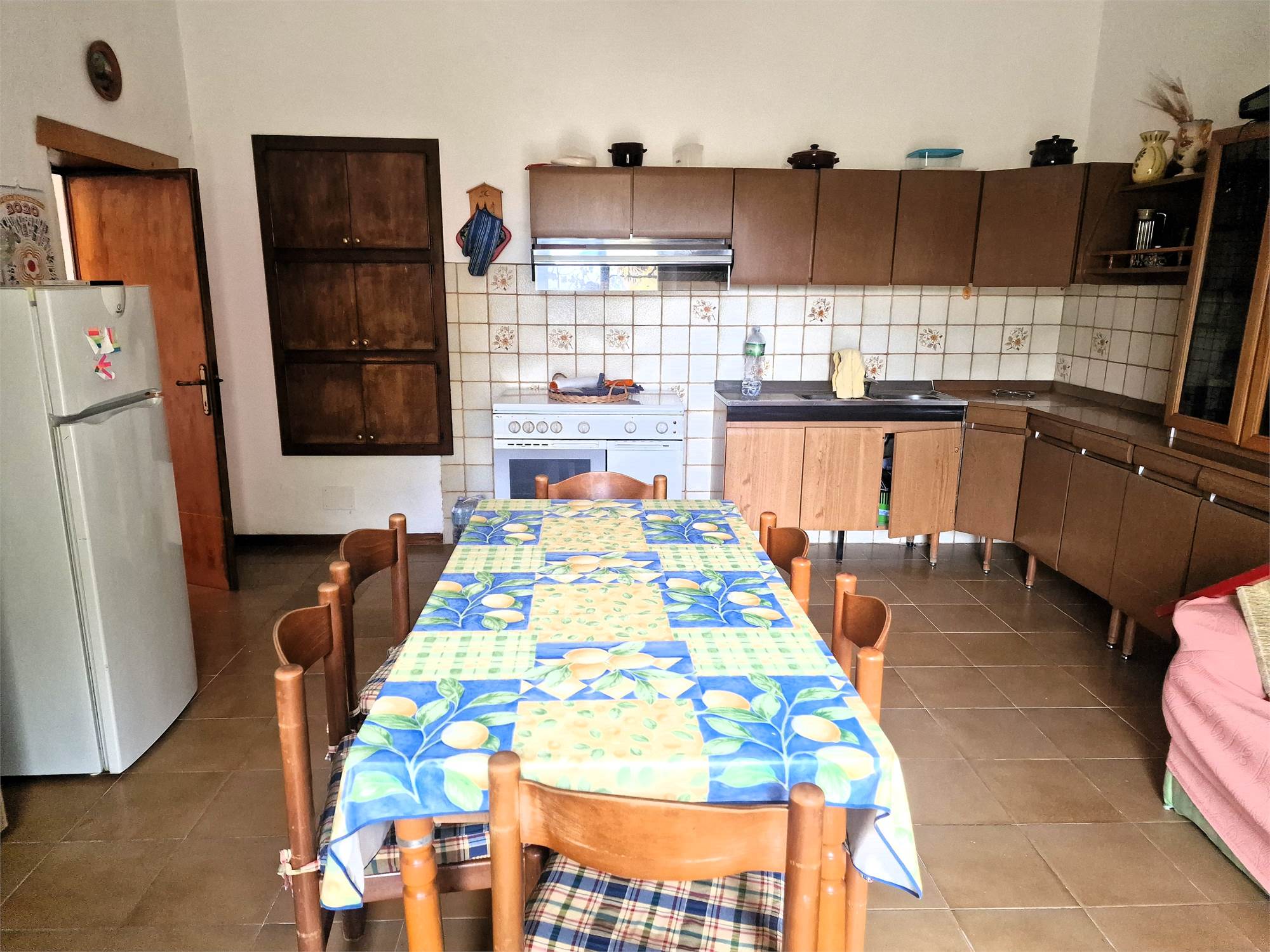La casa è libera su quattro lati e si apre su un cortile rialzato e completamente recintato. Al piano terra si trova un primo appartamento completo stile anni 60, ampio ingresso centrale, soggiorno, cucina abitabile, bagno, due camere da letto da ristrutturare. Al primo piano è previsto un secondo appartamento della stessa ampiezza, circa 120 mq, in corso di costruzione, con accesso da scala interna o da ingresso indipendente e separato che si affaccia sull'altro lato del fabbricato.