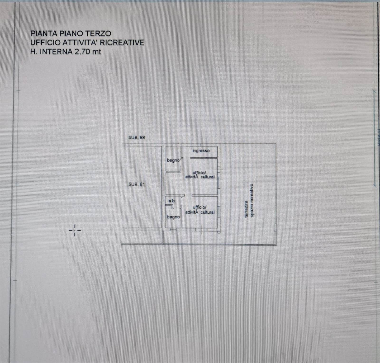 Sala d’attesa d'ingresso, tre vani ad uso ufficio/studio, doppi servizi e grande terrazza ideale come spazio rappresentativo o area relax